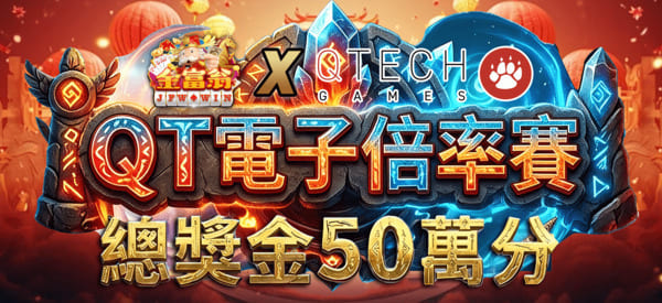 金富翁與QTECH合作推出電子倍率賽活動,總獎金 50 萬分,透過高倍率玩法衝刺排名。