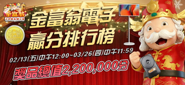 活動期間推出電子遊戲排行榜競賽,總獎品價值高達 220 萬分,玩家累積積分即可參與排名爭奪。