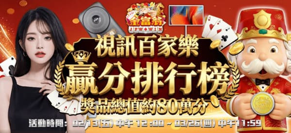 視訊百家樂推出排行榜活動,累積有效投注即可參與排名,獎品總值超過 80 萬分。